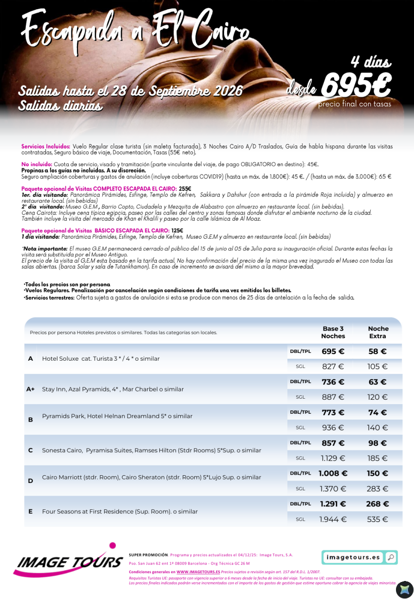 Escapada a El Cairo, 4 días de estancia con visitas opcionales desde 695€. ¡Visita el nuevo MUSEO Egipcio!