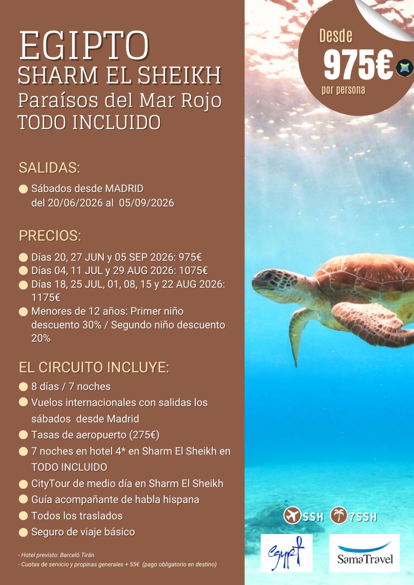 "Sharm El Sheikh - Paraísos del Mar Rojo" 8 días en TI - Hotel 4*[Chárter desde Madrid ] **Desde 975€**