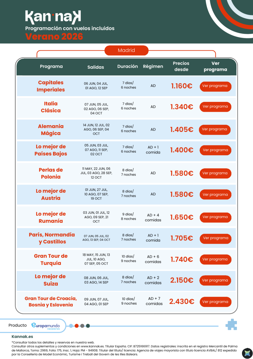 Programación Kannak Verano 2026. Salidas desde Madrid